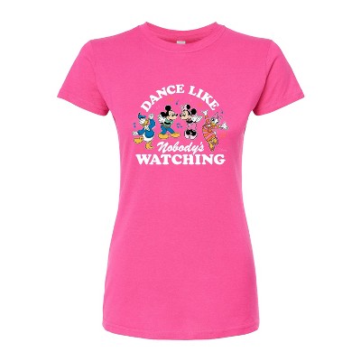 Disney - Mickey & Friends - Donald Duck, Minnie, Mickey, & Daisy - Dance Like Nobody's Watching - Juniors Fitted Graphic T-Shirt - Add a touch of magic to your wardrobe with this graphic apparel featuring iconic Disney designs. Showcasing beloved characters and classic imagery, each piece combines nostalgic charm with modern style—perfect for Disney fans of all ages. Whether you're headed to the parks or just adding whimsy to your everyday look, these graphics bring the magic to life.