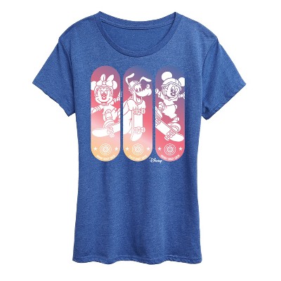 Disney - Mickey & Friends - Minnie, Pluto, & Mickey - Skate Crew - Women's Short Sleeve Graphic T-Shirt - Add a touch of magic to your wardrobe with this graphic apparel featuring iconic Disney designs. Showcasing beloved characters and classic imagery, each piece combines nostalgic charm with modern style—perfect for Disney fans of all ages. Whether you're headed to the parks or just adding whimsy to your everyday look, these graphics bring the magic to life.