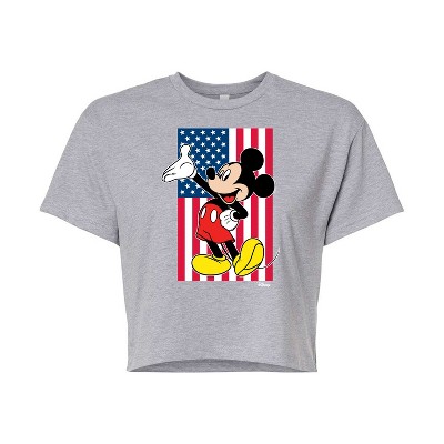 Women's Disney Mickey Friends Sunglasses Cropped Graphic T-Shirt - Heather Grey - Small