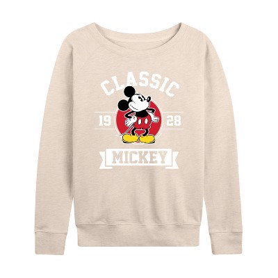 Women's - Disney - Mickey Grid Lightweight French Terry Wide Neck Long Sleeve Graphic Shirt