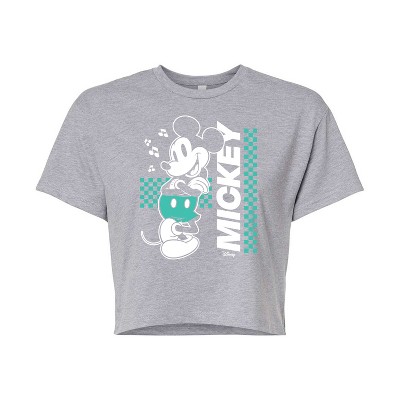 Women's Disney Mickey Heart Ink Wash Cropped Graphic T-Shirt - Heather Grey - X-Large