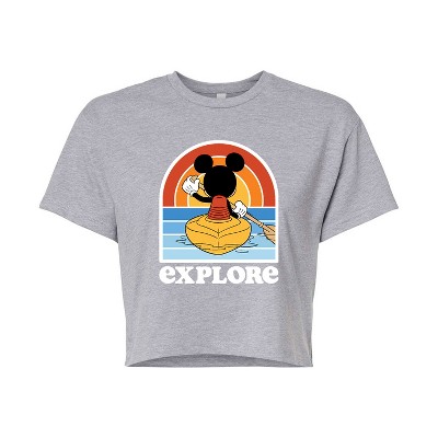 Women's - Disney - Mickey Kayak Explore Lightweight French Terry Wide Neck Long Sleeve Graphic Shirt