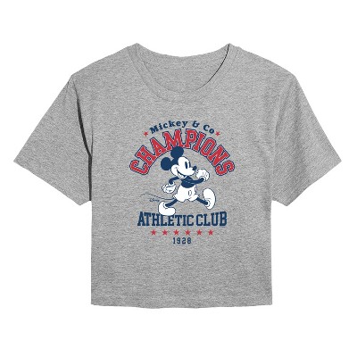 Women's Disney Mickey Mouse Club Member Cropped Graphic T-Shirt - Heather Grey - 2 X-Large