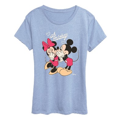Women's Disney Mickey Mouse Varsity Short Sleeve Graphic T-Shirt - Heather Chambray Blue - 2X