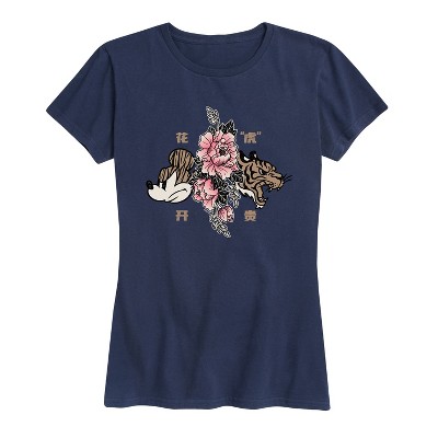 Women's Disney Mickey Pattern Silhouette Short Sleeve Graphic T-Shirt - Navy - 1X