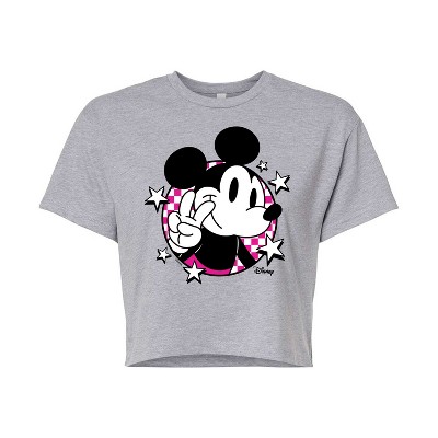 Women's Disney Mickey Sunset Shades Cropped Graphic T-Shirt - Heather Grey - X-Large