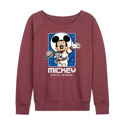 Women's Disney Mickey Sunset Shades Lightweight French Terry Wide Neck Long Sleeve Graphic Shirt - Heather Maroon - X-Large