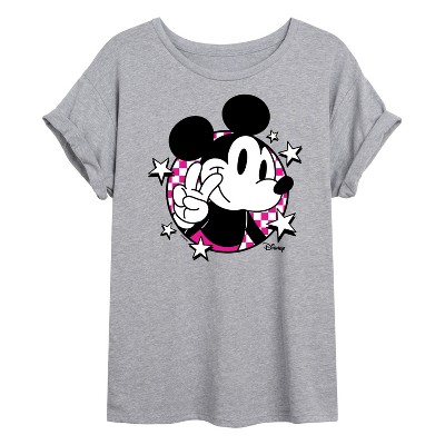 Women's Disney Mickey Sunset Shades Oversized Graphic T-Shirt - Heather Grey - Large