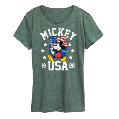 Women's Disney Mickey Surf School Short Sleeve Graphic T-Shirt - Heather Juniper - Small