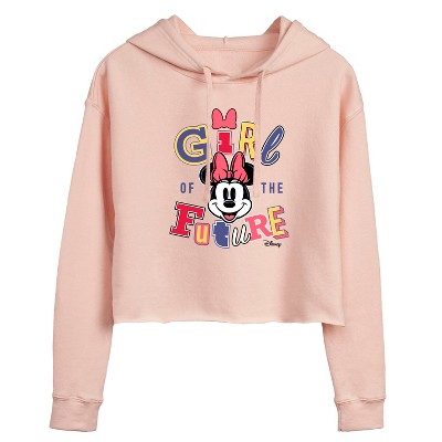 Women's Disney Minnie Flag Heart Cropped Graphic Hoodie - Blush - Large