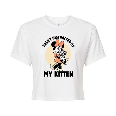 Women's Disney Minnie Flag Heart Cropped Graphic T-Shirt - White - Large