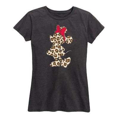 Women's Disney Minnie Leopard Print Short Sleeve Graphic T-Shirt - Heather Charcoal - Small