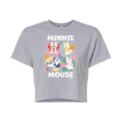 Women's Disney Minnie Mouse Cropped Graphic T-Shirt - Heather Grey - 2 X-Large
