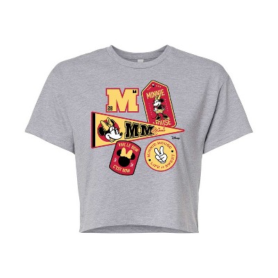 Disney - Minnie Mouse - Collegiate Patches; Life is Sweet - Juniors Cropped Cotton Blend T-Shirt - Add a touch of magic to your wardrobe with this graphic apparel featuring iconic Disney designs. Showcasing beloved characters and classic imagery, each piece combines nostalgic charm with modern style—perfect for Disney fans of all ages. Whether you're headed to the parks or just adding whimsy to your everyday look, these graphics bring the magic to life.