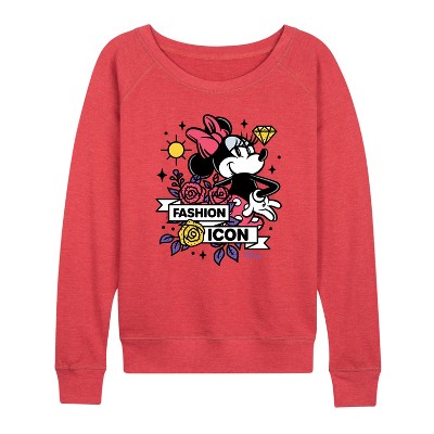 Women's - Disney - Minnie Mouse Lightweight French Terry Wide Neck Long Sleeve Graphic Shirt