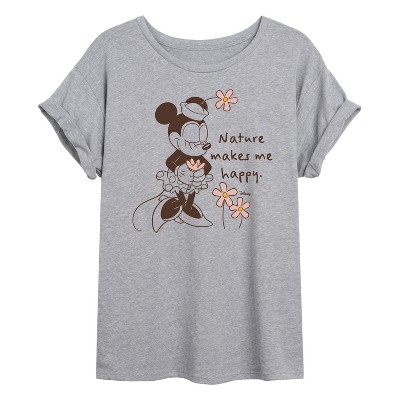 Disney - Minnie Nature Makes Me Happy - Women's Short Sleeve Graphic T-Shirt - Add a touch of magic to your wardrobe with this graphic apparel featuring iconic Disney designs. Showcasing beloved characters and classic imagery, each piece combines nostalgic charm with modern style—perfect for Disney fans of all ages. Whether you're headed to the parks or just adding whimsy to your everyday look, these graphics bring the magic to life.