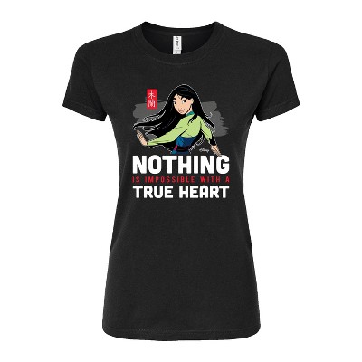 Disney Mulan - Nothing Is Impossible With A True Heart - Women's Short Sleeve Graphic T-Shirt - Add a touch of magic to your wardrobe with this graphic apparel featuring iconic Disney designs. Showcasing beloved characters and classic imagery, each piece combines nostalgic charm with modern style—perfect for Disney fans of all ages. Whether you're headed to the parks or just adding whimsy to your everyday look, these graphics bring the magic to life.