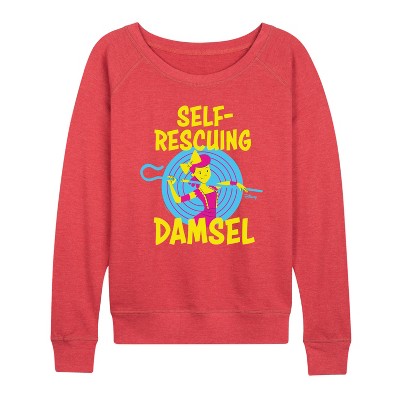 Women's Disney Nothing Lightweight French Terry Wide Neck Long Sleeve Graphic Shirt - Birch - Small