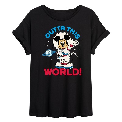 Mickey & Friends - Outta This World - Women's Short Sleeve Graphic T-Shirt - Add a touch of magic to your wardrobe with this graphic apparel featuring iconic Disney designs. Showcasing beloved characters and classic imagery, each piece combines nostalgic charm with modern style—perfect for Disney fans of all ages. Whether you're headed to the parks or just adding whimsy to your everyday look, these graphics bring the magic to life.