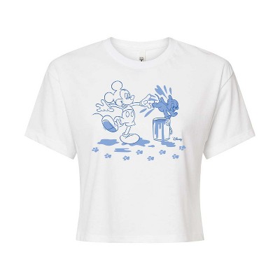 Women's - Disney - Peace Love Mickey Cropped Graphic T-Shirt