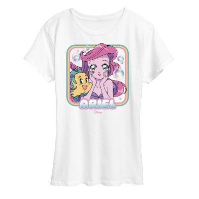 Disney Princess - Ariel And Flounder With Flowers - Women's Short Sleeve Graphic T-Shirt - Live the fairytale every day with Disney Princess graphic apparel. Featuring beloved heroines like Cinderella, Ariel, Belle, and Moana, each design celebrates the timeless magic, courage, and individuality of Disney’s iconic princesses. Perfect for dreamers of all ages, these pieces bring a touch of royal charm and inspiration to your everyday style.