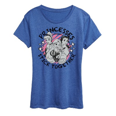 Women's Disney Princess Christmas Grid Short Sleeve Graphic T-Shirt - Heather Blue - Medium