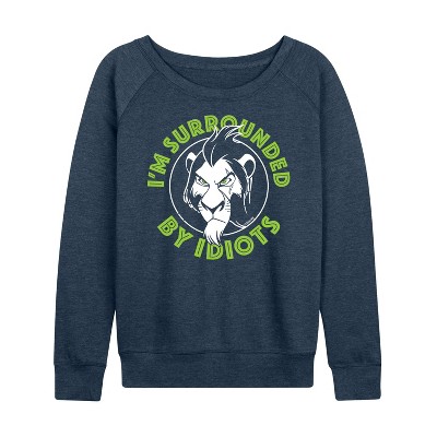 Women's Disney Scar Vapor Wave Lightweight French Terry Wide Neck Long Sleeve Graphic Shirt - Heather Indigo - Medium