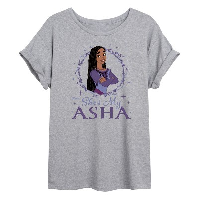 Disney Wish - Shes My Asha - Juniors Cropped Cotton Blend T-Shirt - Add a touch of magic to your wardrobe with this graphic apparel featuring iconic Disney designs. Showcasing beloved characters and classic imagery, each piece combines nostalgic charm with modern style—perfect for Disney fans of all ages. Whether you're headed to the parks or just adding whimsy to your everyday look, these graphics bring the magic to life.