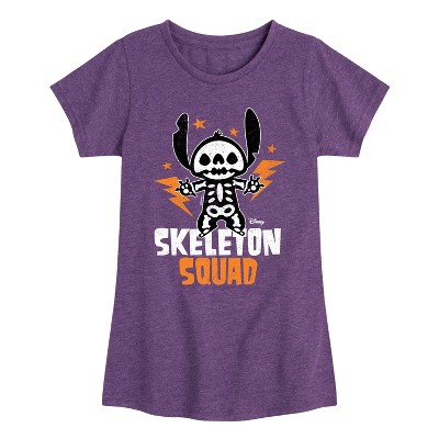 Lilo & Stitch - Skeleton Squad - Women's Short Sleeve Graphic T-Shirt - Celebrate the ohana with Lilo & Stitch graphic apparel, blending new visuals with classic heartwarming moments featuring Lilo, Stitch, and the bonds of family.