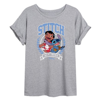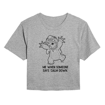 Disney - Stitch Collegiate Group - Juniors Cropped Short Sleeve Graphic T-Shirt - Add a touch of magic to your wardrobe with this graphic apparel featuring iconic Disney designs. Showcasing beloved characters and classic imagery, each piece combines nostalgic charm with modern style—perfect for Disney fans of all ages. Whether you're headed to the parks or just adding whimsy to your everyday look, these graphics bring the magic to life.