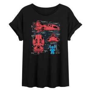 Women's - Disney - Stitch Ship Schematic Oversized Graphic T-Shirt - 1 of 4