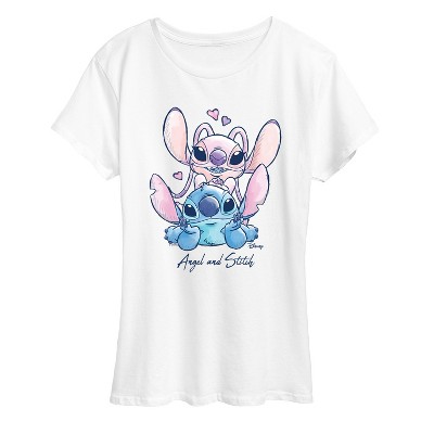 Women's Disney Stitch Sit Floral Short Sleeve Graphic T-Shirt - White - X-Large
