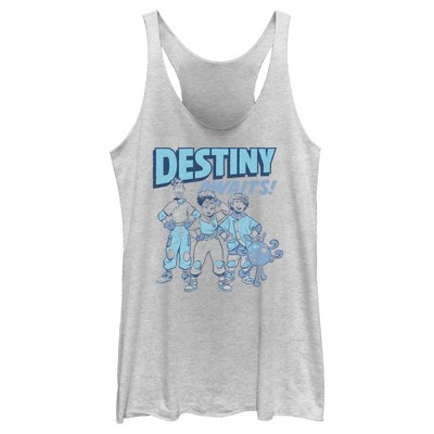 • Strut your stuff with this stylish new Women's Racerback Tank Top! Featuring the blue blob alien Splat hanging from his name printed across the front with a cool splash background!