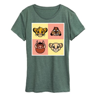 Disney - The Lion King - Faces Lion King - Women's Short Sleeve Graphic T-Shirt - Add a touch of magic to your wardrobe with this graphic apparel featuring iconic Disney designs. Showcasing beloved characters and classic imagery, each piece combines nostalgic charm with modern style—perfect for Disney fans of all ages. Whether you're headed to the parks or just adding whimsy to your everyday look, these graphics bring the magic to life.