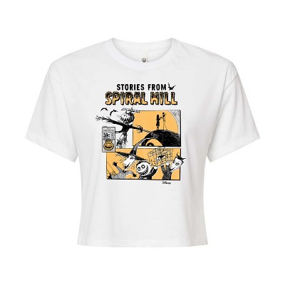 Women's Disney The Nightmare Before Christmas Cropped Graphic T-Shirt - White - Small