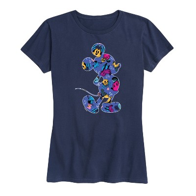 Women's Disney Tie Dye Zebra Print Mickey Short Sleeve Graphic T-Shirt - Navy - Large