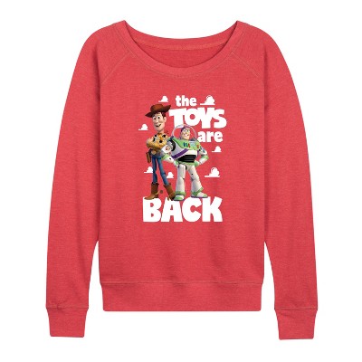 Women's Disney Time For Fun Lightweight French Terry Wide Neck Long Sleeve Graphic Shirt - Heather Red - Small