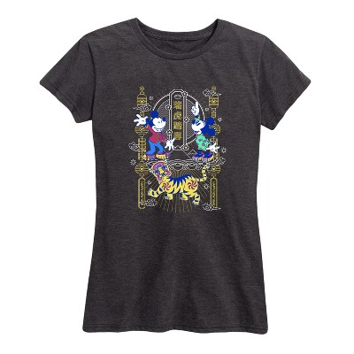Women's Disney Tropical Fill Mickey Short Sleeve Graphic T-Shirt - Heather Charcoal - 2 X-Large