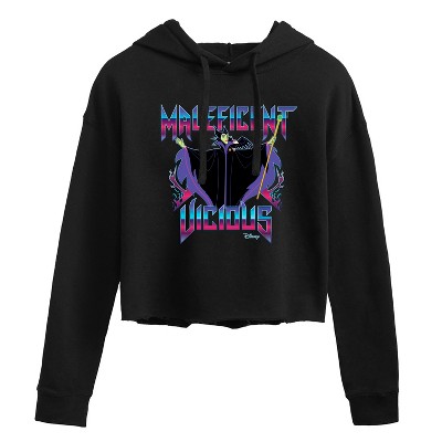 Disney Villains - Truly Evil Maleficent - Juniors Cropped Pullover Hoodie - Unleash your dark side with Disney Villains graphic apparel. Featuring classic baddies like Maleficent, Ursula, and Cruella, these designs let you show off your villainous side.