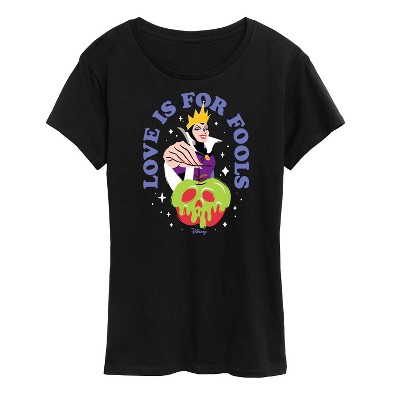 Disney Villains - Valentine's Day - Love Is For Fools - Women's Short Sleeve Graphic T-Shirt - Unleash your dark side with Disney Villains graphic apparel. Featuring classic baddies like Maleficent, Ursula, and Cruella, these designs let you show off your villainous side.