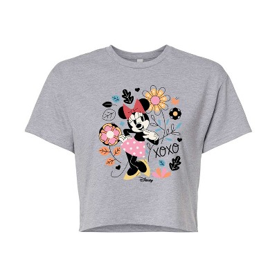Women's Disney Xoxo Stacked Cropped Graphic T-Shirt - Heather Grey - Large