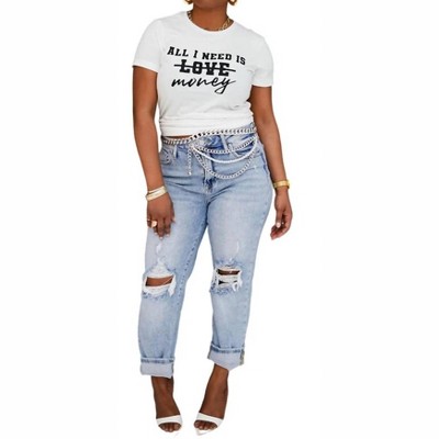 These must-have jeans are fit to perfection.Straight leg jeans. 5-pocket styling. Belt loops. Distressed. 100% cotton. Machine wash cold.