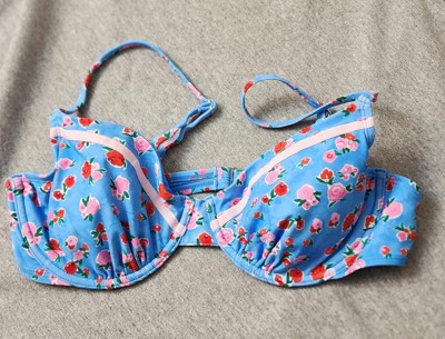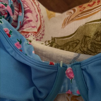 [This review was collected as part of a promotion.] This swimsuit top is cute and fits well. I usually wear a size small or 34B and the small top fit well, although I probably could’ve used a medium. I really like the shade of blue with the floral print and ribbon detail. The adjustable clasp and removable pads offer some flexibility and the underwire offers extra support. I think this is very reasonably priced and pairs great with the matching bottoms. I received an incentive to write this review.
