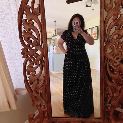 Enjoy casual days in easy-breezy style with this Dolman Short-Sleeve Maxi A-Line Dress from A New Day™. Made from recycled polyester chiffon fabric with soft lining, this maxi dress offers comfortable wear. It's designed with a deep V-neckline and dolman short-sleeves for a gorgeous look, and the full-elastic waistband offers a flattering fit. Pair this dress with sneakers for a casual daytime date or throw on some heels to turn heads at your next soiree.
