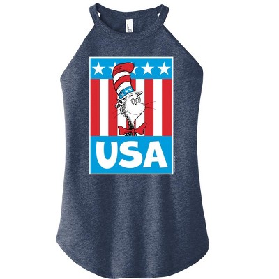 Dr. Seuss - All Things Red White And Blue - Juniors High Neck Tank Top - Our collection of graphic apparel featuring officially licensed Dr. Seuss characters brings the whimsy and wonder of Seussville straight into your wardrobe. From the mischievous Cat in the Hat to the stinky Grinch, each design showcases iconic characters and scenes from Dr. Seuss's timeless stories.