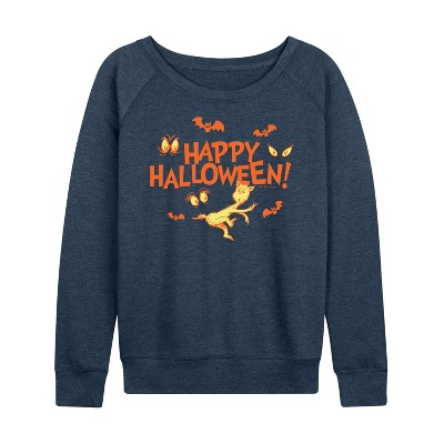 Dr. Seuss - Happy Halloween Eyes - Women's Lightweight French Terry Long Sleeve Shirt - Our collection of graphic apparel featuring officially licensed Dr. Seuss characters brings the whimsy and wonder of Seussville straight into your wardrobe. From the mischievous Cat in the Hat to the stinky Grinch, each design showcases iconic characters and scenes from Dr. Seuss's timeless stories.