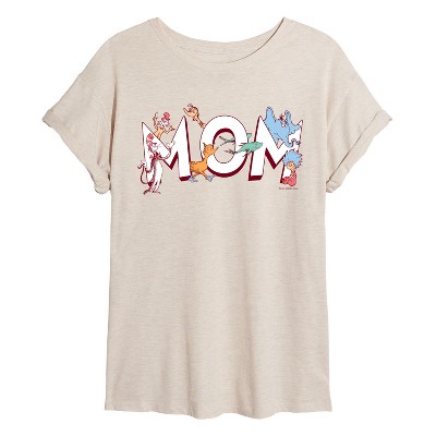Dr. Seuss - Mom Seuss Characters - Women's Short Sleeve Graphic T-Shirt - Our collection of graphic apparel featuring officially licensed Dr. Seuss characters brings the whimsy and wonder of Seussville straight into your wardrobe. From the mischievous Cat in the Hat to the stinky Grinch, each design showcases iconic characters and scenes from Dr. Seuss's timeless stories.