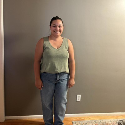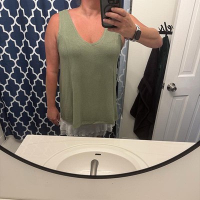Stay cool and comfy in this Drapey Tank Top from Ava & Viv™. Made from a fabric blend of rayon, recycled polyester, and spandex, this sleeveless tank top moves with you. It is fashioned in a V-neckline and is tailored in a regular fit for added comfort. You can pair this mid-length top with jeans, yoga pants or joggers to complete your ensemble.