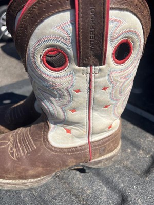 Introducing the women's Durango Maverick Steel Toe Waterproof Western Western Work Boot in Sable Brown/White. This women's 10-inch protective toe style has a full-grain leather foot with a faux shaft, soft mesh lining and waterproof membrane bootie construction. And features the Durango X-Pand System, which is a hidden gore expansion for universal fit and easy on/off. Approved to the ASTM standards, these boots have a steel toe cap within the square toe and are electrical hazard resisting. This style also includes the Durango X-Treme Comfort Footbed with memory foam for all day comfort and support, a fiberglass shank for stability and a rolled shank area allows easy placement in the stirrup. The style is finished off with a slip- and oil-resisting rubber outsole, single row sole stitch, 1 1/8-inch rocker heel. Pull on all-day work comfort in this women's 10-inch Western Waterproof Sable Brown/White Steel Toe Durango Maverick. Get a pair today!