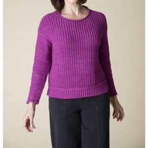 The ultimate go-to sweater, expertly crafted to provide the perfect combination of warmth and style. Its classic design and soft fabric make it a must-have addition to your wardrobe. A celebration of texture and color, this timeless cable knit pullover offers both comfort and style. Made in a cotton blend with mixed knit stitching, it has rolled edges on the cuffs and neckline, and slits at the ribed hem. 60% cotton, 40% acrylic hand wash, dry flat small measures 40" bust, 21" length large measures 44" bust, 22" length